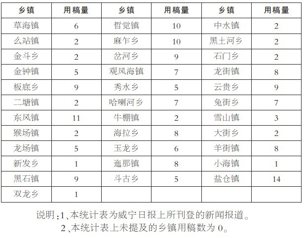 威宁日报2012年5月份用稿情况通报(乡镇)