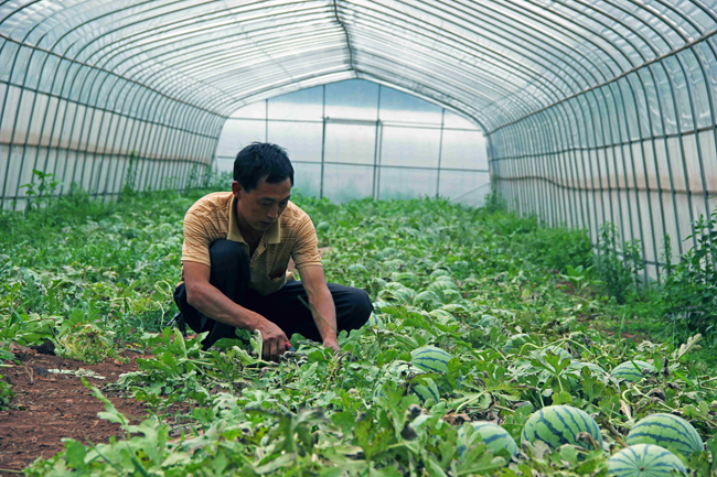 据赵远章介绍,该合作社由当地党委政府积极争取到扶贫资金170万元,自筹资金50余万,流转土地55亩,建成钢架结构大棚100个,主要种植西瓜、番茄、葡萄、大白菜等,可解决农村贫困劳动力就业200多人,示范带动周边村寨10个村民组568户2568人。目前,100个大棚内西瓜、番茄、葡萄等长势喜人。基地按“村支部+合作社+基地+农户”模式运作,由村支两委牵头,4个党小组50余名党员先学先试,带动村民学习大棚蔬菜种植技术,鼓励大家投入资金,发展科技产业。当地群众按每亩1000元把土地流转给基地,还可优先在基地里打工,一天可获得50元的报酬,年收入在15000元左右,比自己耕种划算得多。