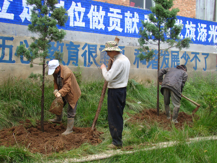 ▲为美化亮化环境,建设环境友好型政府。6月20日,龙街镇投入资金7万元,组织干部职工开展植树活动。当天,共种植银杏树、迎客松各30株,图为种植现场。(江静 摄)