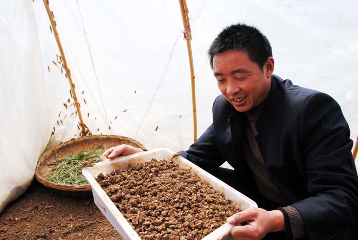 龙场镇干河村村支书杨本苍,2011年利用在外学到的技术,回乡办起了大棚蝗虫(俗称蚂蚱)养殖场。目前,杨本苍在村里租地40余亩,用来养蚂蚱。杨本苍的蚂蚱每斤能卖到60多元,远销湖北、云南等地,年收入逾5万多元。为让更多的人走上致富路,杨本苍把养殖技术毫无保留地传授给乡亲们,带领大家发展特色养殖,人们亲切地称他为“蚂蚱支书”。如今,不少村民开始尝试蚂蚱养殖,看着越来越多的订单,人们对未来满怀希望。