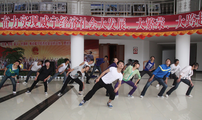据悉,本次文艺演出主要由乌蒙演艺集团、毕节实验三中、自治县乌撒文化传媒公司、阿西里西艺术团演员担任,共有15个节目,以民族歌舞、杂技等多种艺术表演形式突出主题,集中展现洋芋花节的奇、秀、美以及我县独具特色的地域魅力和多姿多彩的民族风情,让更多的人走进威宁、了解威宁、热爱威宁。下图为端午节期间演职人员坚守在排练现场加紧排练。 (袁永江)