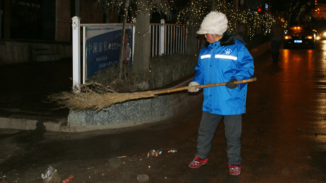 端午节期间,我县500余名环卫工人全部放弃休息,始终坚守在环卫工作第一线,确保城区垃圾不落地、不过夜。端午节当天晚上11点以后,县城逐渐飘起了小雨,此时正是垃圾收运的时候,而且节日期间垃圾量比平时要多一倍多,为确保市容整洁,垃圾及时清扫清运,环卫工人们全部投入到了工作之中。端午期间,环卫人员共清扫清运垃圾400余吨,保证了城区市容整洁。图为一名环卫工人正冒雨清扫垃圾。(苏升)