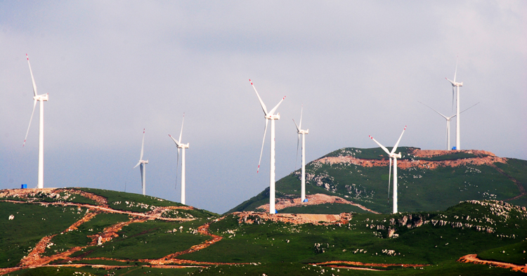 ▲近年来,我县充分利用乌蒙高原丰富的风能资源,大力发展风力发电项目。目前,仅百草坪风电场装机容量就达30万千瓦,总投资20亿元,由祖安山、百草坪、大法、海柱4个风电场组成。我县因年平均日照数为1812小时,被气象学界命名为“阳光城”。目前,全县适合发展太阳能光伏发电项目的区域达6925平方公里,当地风力发电前景广阔。图为百草坪的风力发电场景。(实习记者 杨文斌 摄)