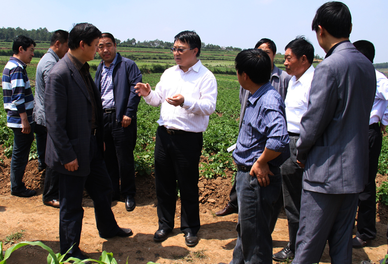 自治县委副书记、县长陈波(中)在双龙乡检查马铃薯产业发展情况。 (叶启伟 摄)