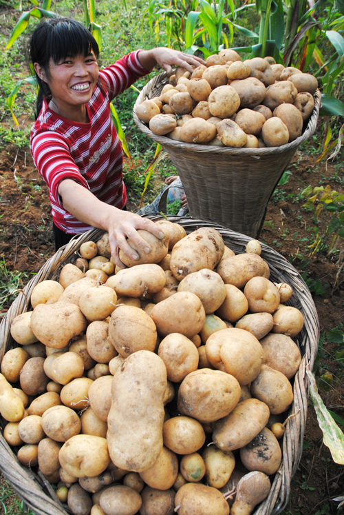 龙场镇青友村一户农家在抢收马铃薯。(杨文斌 摄)