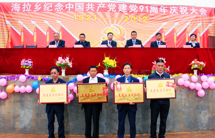 本报讯 6月28日,在"七一"建党节来临之际,海拉乡举行了庆祝中国共产党成立91周年系列活动,并对在全乡创先争优活动中涌现出来的先进集体和先进个人进行表彰。