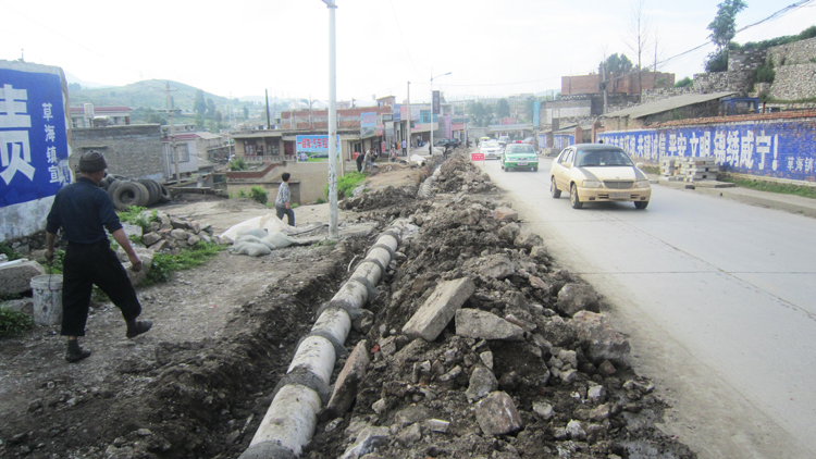 ▲全长2850米,总投资约3100万元的威宣路人行道改造工程正式启动。据悉,该工程由葡泉路至凤山寺脚,主要包括路面改造、铺设地下管网、安装路灯及道路绿化等。图为施工现场。(谢先文 摄)