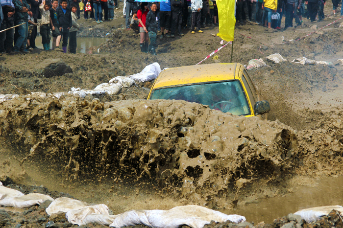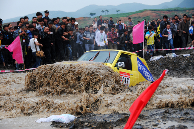 6月30日,虽然前一天晚上下过大雨,比赛场地满是积水和淤泥,但并不影响观众和参赛选手们的激情。早上7点,便有观众早早地赶到参赛现场等候一睹大赛盛况。据了解,本次大赛吸引了来自贵州、云南、湖南、浙江、广东等地的80多名越野E族爱好者参加比赛。比赛通过封闭式双赛道的方式,赛车通过大驼峰、炮弹坑、月牙湾、深水坑、双边桥等重重障碍,采取两车同时发车竞速,逐一参与角逐。本次大赛为期两天,已于7月1日结束,最高奖金3万元。