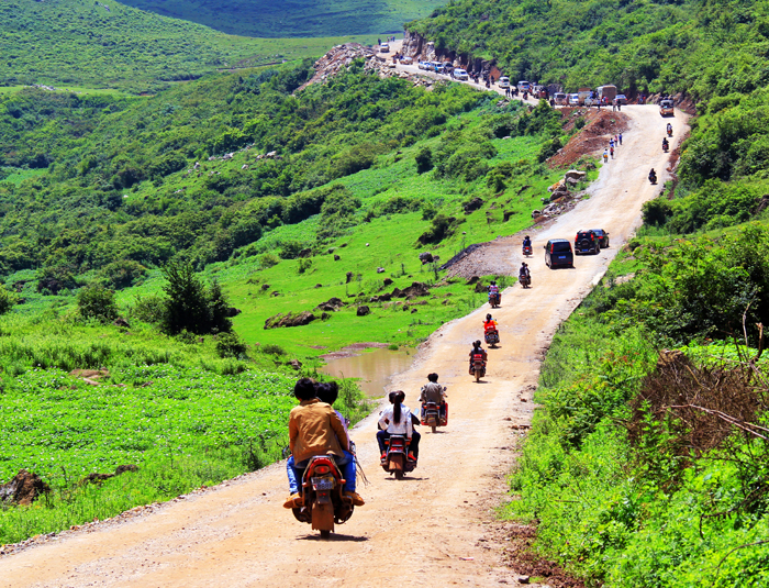 “看乌蒙风车飞舞,享现代人生。”这是笔者行走在传统牧场与现代风电场完美碰撞的威宁百草坪的感悟。图为奔向百草坪的游客。