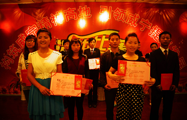 近日,由共青团自治县委组织的“构筑威宁精神高地,引领威宁提速发展”演讲比赛落下帷幕,来自35个乡镇和县直单位的54名选手经过激烈的角逐,大街乡中心校教师李愫脱颖而出,获得了第一名,龙场镇计生特岗周凤、牛棚乡村教师马丽分获第二名。图为获奖选手。