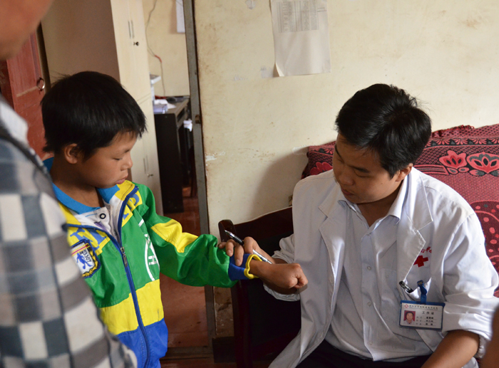 ▲7月9日,县残联到岔河乡开展"七彩梦行动计划"与"爱心永恒 肢残圆梦"筛查活动。主要针对白内障,0至45周岁小儿脑瘫后遗症、意外伤害引起的骨折畸形、外伤及车祸致残等各种畸形的肢体残疾患者,对筛查出的患者,由县残联组织到指定的医院接受免费治疗。图为一名患儿正在接受检查。(李华 摄 )