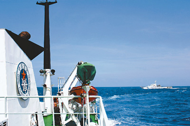 北京时间7月12日,中国渔政202船、204船、35001船编队在执行我国专属经济区护渔巡航任务过程中,巡航至钓鱼岛附近海域。为维护中国海洋渔业权益和渔业生产作业秩序,保护渔民生命财产安全,中国渔政自2010年开始,将钓鱼岛及其附属岛屿附近海域的护渔巡航纳入常态化。 (新华社记者 罗争光 摄)