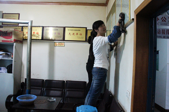 ▲7月12日,自治县交通运输局全面开展"整脏治乱"大检查、大排查、大整治工作,全体职工大行动,对居住小区、办公室、楼层院坝等进行全面大扫除。图为单位职工打扫卫生现场。(刘荣 摄)