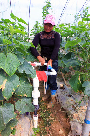 “要是往年这里都变成湖了。”在基地上打工的李大姐说,“这里是群山环抱的低洼处,山上的洪水每年最少要‘光顾’这里两三次,今年的几次洪水是很大,每次都只过了2个小时,土里的积水就排干了,对蔬菜一点儿影响都没有,都是这些排涝沟立的功。”