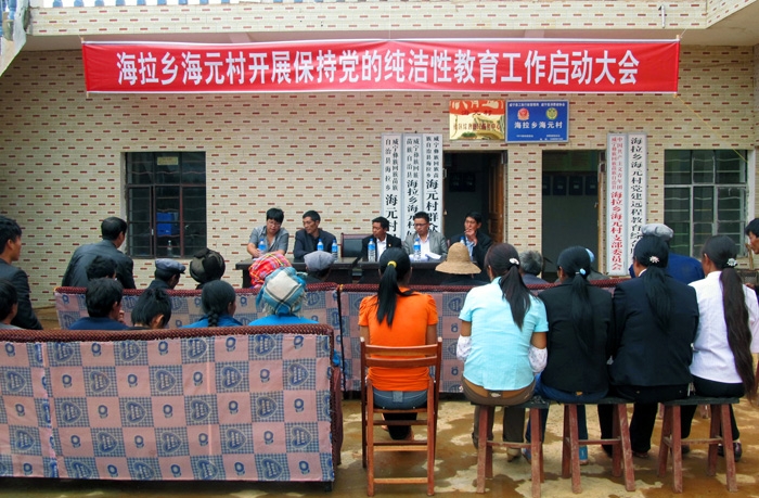 ▲7月15日,海拉乡海元村组织全村党员深入开展保持党的纯洁性教育动员,深入学习贯彻全县开展保持党的纯洁性教育教育工作辅导大会精神,对杨兴友书记在辅导大会上的报告进行传达学习。并要求全村每位党员要以党内"六心"教育各写一篇心得体会。图为启动现场。 (孔德亚 摄)