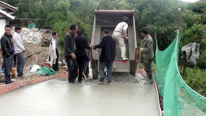▲今年,二塘镇梅花村争取到"一事一议"财政奖补工程,该工程总投资320.26万元,财政奖补210.32万元,硬化通组路14.4公里,硬化人行道8.7公里,修建公厕3个,垃圾池8个,安装太阳能路灯50盏,修建小广场1个,排污沟800米,全部工程预计8月底竣工。图为村民正在工地上工。 (朱俊 摄)