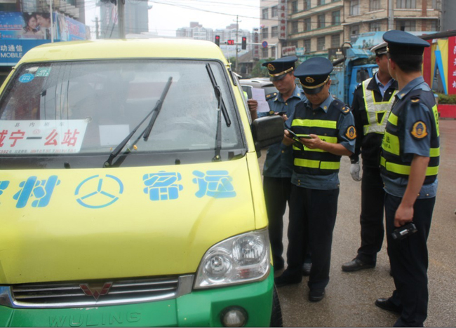 近日,由县交通局、安监局等部门联合组成的道路交通“打非治违”执法专项组在行动。此次道路交通安全专项整治将对违章车辆进行严厉打击,并深挖“保护伞”。图为联合执法组检查过往车辆。(本报记者 胡雍辉 摄)