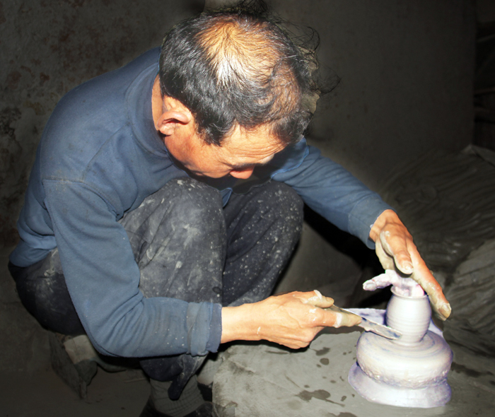 小米乐陶器传承人廖万清在制作乌撒茶罐