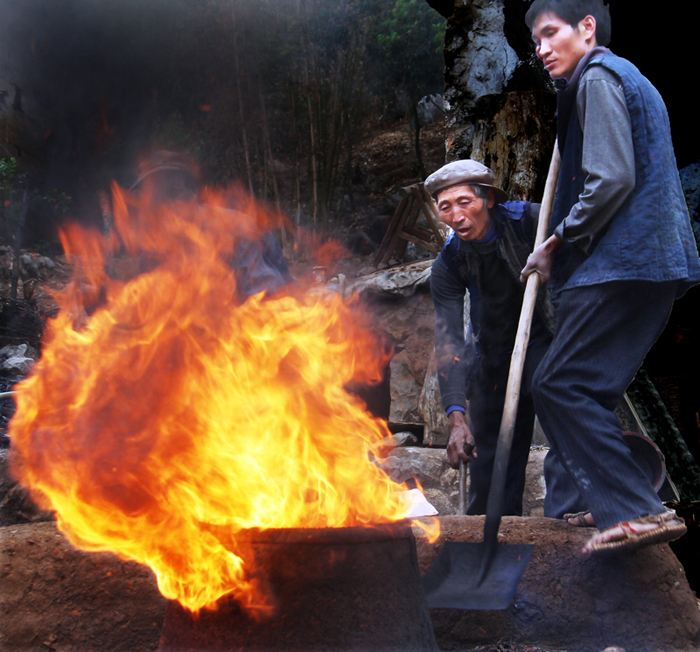 若是把罐厂平了建房,六万块钱建的房子已经很像房子了。可以建一栋小平房,还可以再建一间小厢房,但廖万清还是舍不得平了厂房建房子,而是硬花了一年多时间在屋后的石岩上一锤一錾新凿了个地基来建。结果,光建正房就花了近十万块钱, 不但原计划在门口修的院坝和厢房没有修,还欠了几万块钱的外债。这回廖万清是再也坐不住了,只好到矿山跟老婆和儿子一起去打工挖矿。挖矿是又苦又累的高危作业,但收入也还不错,廖万清每月都能挣上三四千元。照这么下去,用不了三两年,廖万清不仅能把家里欠下的外债还清,还能把门口的院坝和厢房修好。可刚刚干了两个月,弟弟廖亮清就从老家打来电话,说“蔡茶叶”来找他订做乌撒烤茶的茶罐,问他愿不愿做。廖万清知道弟弟说的“蔡茶叶”,就是香炉山茶园的董事长蔡定常。一听说是蔡董事长找他订购茶罐,廖万清便来了精神,二话不说就答应了。