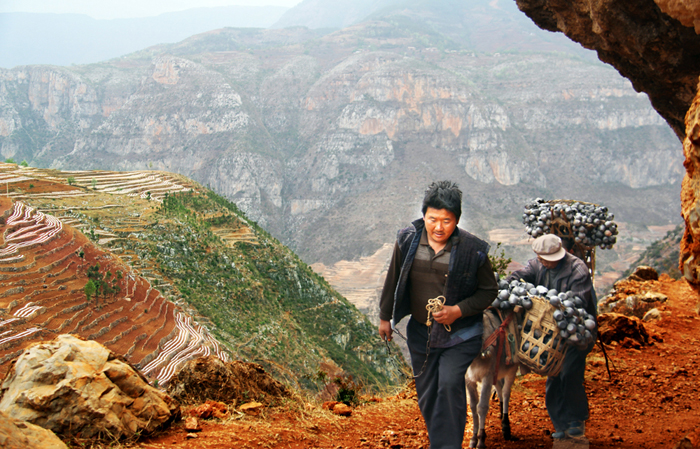 小米乐由于地处牛栏江边的悬崖上,人烟稠密,土地稀少。以前罐子畅销的时候,家家户户都忙着做罐子卖,对土地的多少并不待见。这下要靠种地为生了,大伙才觉出土地的金贵。于是都想方设法扩充自家的土地。凡是田边地角能挖的都挖,能刨的都刨,要是碰上挖不动也刨不掉的生根石,只要石缝缝头夹了一把土,都要栽上一棵苞谷,种上一窝洋芋,或是点上几粒豆子,撒上几颗荞子,家里闲置的罐厂自然是首当其冲的摧毁目标。庄稼人连不下蛋的母鸡都不肯留,怎么能留得下闲置的土地呢。