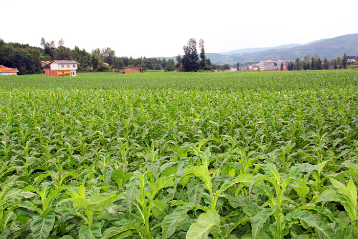 ▲7月19日,秀水乡万亩优质烤烟基地里,长势良好。据了解,今年我县收购80万担的烟叶。目前,除了牛棚等部分乡镇遭遇冰雹灾害外,全县烟叶长势宜人,现已进入烘烤阶段。(本报记者 李玉荣 摄)