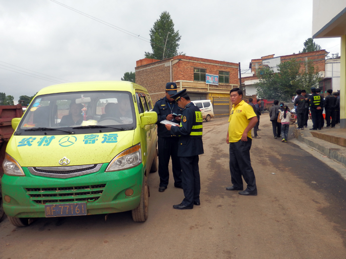 ▲7月23日,牛棚镇联合县运管部门,组织派出所、国土所、安监站开展"打非治违" 整治车辆活动。此次整治主要对农用车、各种客运车、摩托车等进行整治。图为执法人员正在检查过往车辆。 (冶付红 摄)