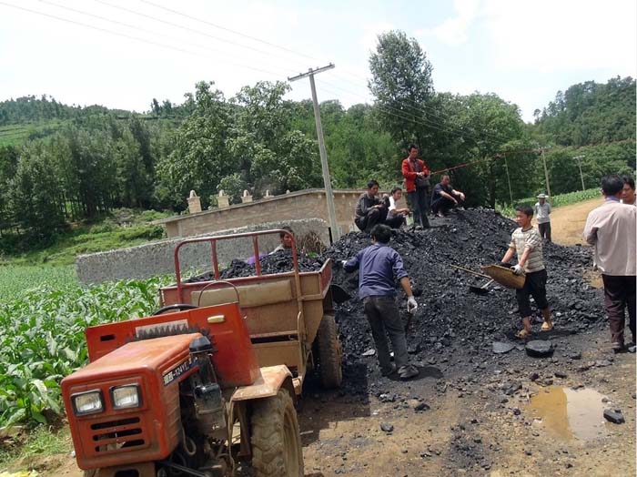 ▲7月22日,兔街乡青竹村村干部正组织村民们用拖拉机运送烤烟用煤,忙得不可开交。今年该乡把烤烟用煤作为当前工作的重点来抓,先后派出工作人员深入庐山镇、金钟等煤矿进行采购,现已采购煤炭6110吨。图为青竹村烤烟煤发放现场。(本报记者 胡雍辉 通讯员 王智勇 摄)