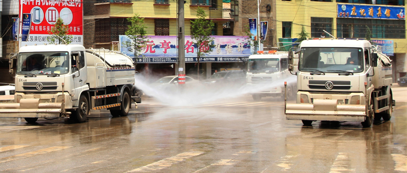 为确保我县创建省级卫生县城目标任务的圆满完成和为“全省级乡村整治现场会”营造良好的环境,我县在连续的阴雨天气过后,全面开展县城清扫工作。图为环卫清扫车下在清洗大街。