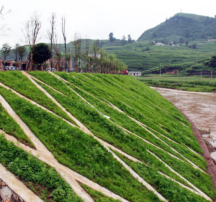 ▲7月27日,东风镇元木村乌江河堤上,芳草如碧。这是该镇以三江源综合治理项目为契机,对流经该镇的乌江沿岸进行河堤治理的"生态文章"。(本报记者 张锋 摄)