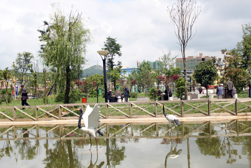 ▲假山,绿水,草坪。走进会展中心休闲广场,独特的风景魅力和浓郁的环境气氛,在绿树的掩映下构成了一幅美丽的景观。据了解,近年来我县强力打造此景点,让美丽的风景和醇厚的风土人情吸引络绎不绝前往游玩的人们陶醉其中。(本报记者 胡雍辉 摄)