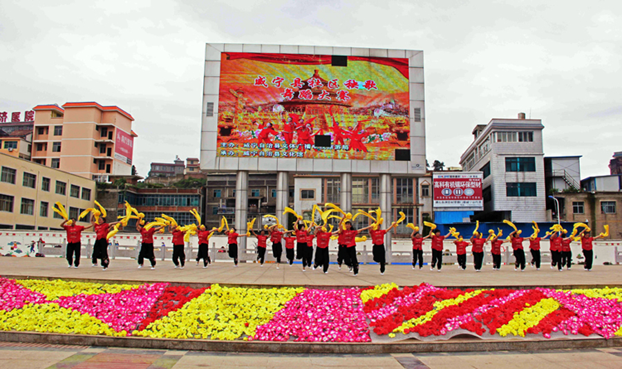 8月1月,我县组织开展社区秧歌舞蹈大赛。县委常委、宣传部部长李茂现场指导并作讲话。据悉,此次大赛共有来自草海镇各社区的16支队伍参赛,设一等奖一名,二等奖二名,三等奖三名。图为参赛秧歌队在台上激情演出。(本报记者 沈光勇 摄)