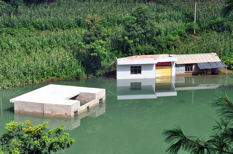 7月30日,龙场镇普降暴雨,导致该镇克沟村一组遭受洪涝灾害。造成通村公路损毁、农作物、房屋被淹等灾害,致当地30多村民受灾,经济损失达15万余元。图为当地民房被淹。 (禄崇 摄)
