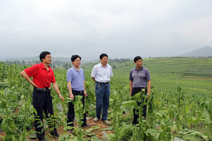 日前,迤那、中水、黑石、哲觉、龙场、盐仓等乡镇遭受不同程度的风雹,据初步统计,共造成7个乡镇18735人受灾,农作物受灾836公顷,成灾402公顷,绝收251公顷,倒塌房屋5户5间,直接经济损失1135.5万元。灾害发生后,县委政府高度重视,民政、烟草部门、保险,农业畜牧等部门都深入灾区仔细查看灾情。图为8月3日,县委常委、迤那镇党委书记马祥宏,副县长马仲华,政协副主席罗永宽在迤那镇实现检查烤烟灾情。(宋福忠 摄)