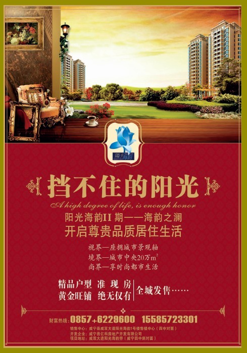 阳光海韵由威宁县招商引资企业亿科房地产开发有限公司开发建设。二期项目为集商品住宅、农贸市场和办公培训楼开发为一体的综合性房地产开发项目。