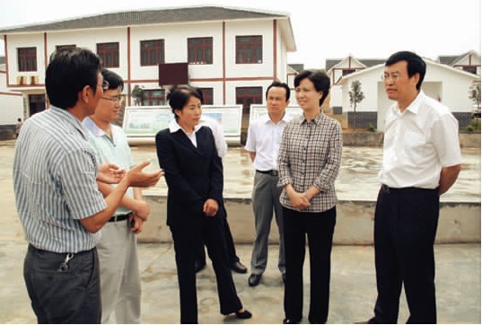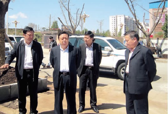 省委常委、常务副省长谌贻琴(右二)在市委书记张吉勇(右一)陪同下到迤那镇调研新农村建设及村庄整治工作。(本报记者 叶启伟 摄)