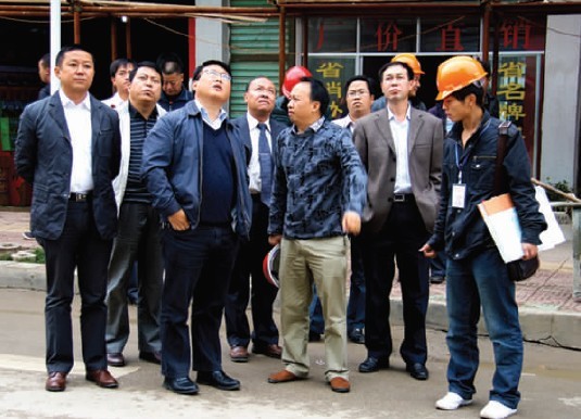 市委常委、自治县县委书记杨兴友,自治县政协主席禄俊查看城区市政工程。 (本报记者 叶启伟 摄)