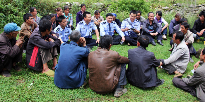 这是自治县公安局与盐仓镇在盐仓黎平村开展的“亲情为民·流动接访”活动的一幕。