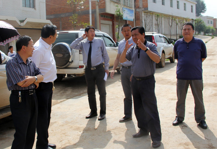 8月8日,市人大主任安金黎,副主任李克明在自治县人大主任刘青松,县委常委、常委副县长刘春,政协副主席、住建局局长陈兴志的陪同下到牛棚镇就小城镇建设、牛棚镇土目庄园等进行实地调研。图为安金黎(右二)调研该镇小集镇建设。(冶付红 摄)