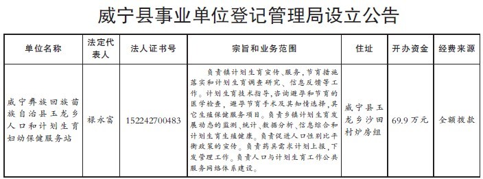 威宁县事业单位登记管理局设立公告