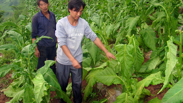 ▲8月4日,龙街镇海龙村遭受冰雹袭击。本次冰雹灾害导致海龙村450余亩烤烟受灾,绝收200余亩,涉及农户40余户,造成直接经济损失150多万元。图为受灾的烟地。 (江静 摄)