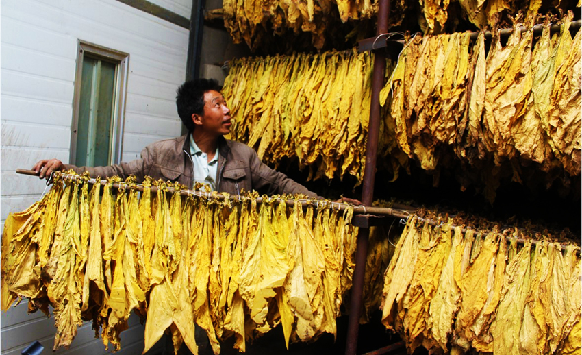“今年我种了40多亩烤烟,可以卖七八万元。”近日,记者在小海镇松棵村采访时看到,种烟大户李中林正从烤烟房里取出烘烤后的黄灿灿的烟叶,满脸带着幸福而满足的微笑。据了解,该镇今年种植烤烟13000多亩,烤烟长势喜人,烟农增收在望。图为李中林从烤房里取出烘烤后的烟叶。(本报记者 胡雍辉 摄)