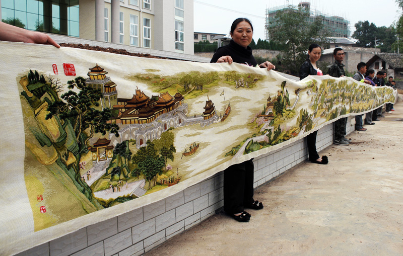 2011年举行的多彩贵州旅游商品“两赛一会”上,一幅长33米、宽1.5米的十字绣《清明上河图》在贵阳国际会议展览中心亮相,该十字绣由28名苗族妇女历时150余天精心绣作而成,是目前世界最长十字绣。