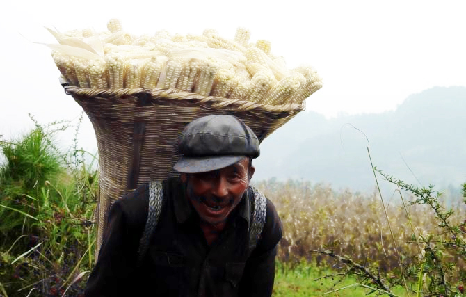 ▲近年来,龙场镇加快产业结构调整步伐,依托当地得天独厚的自然优势,引导农民大力发展粮食生产,拓宽增收渠道。图为青友村村民松老汉收获玉米归来。(本报记者 杨文斌 摄)