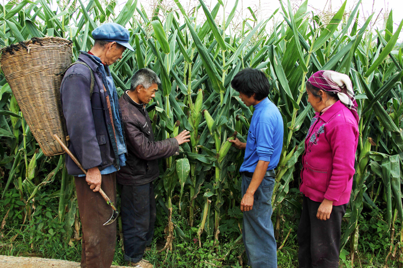 “作为样板点,松山高产玉米示范基地已取得初步成效,我们将站在新的起点上,朝着‘一年新气象,两年大变样’的目标迈进,继续深化产业结构调整,推进增量增收致富工程,争取尽早在全县甚至全市范围内推广。”采访结束时,罗永宽站在庄稼地边很有信心地和当地群众交谈。图为当地群众查看田间玉米长势。