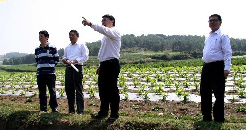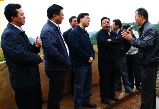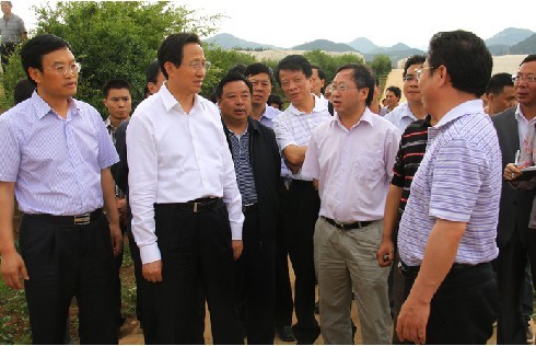 农业部部长韩长赋(左二)在市委书记张吉勇(左一)等领导陪同下到我县调研农业发展现状。