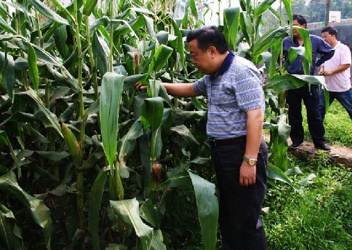 农业部副部长张桃林(左三)在市委常委、自治县委书记杨兴友(左四),自治县委副书记、县长陈波(左二),自治县委副书记、草海管理局党委书记冯兴忠(左一)等领导陪同下到我县小海镇调研高产玉米种植情况。