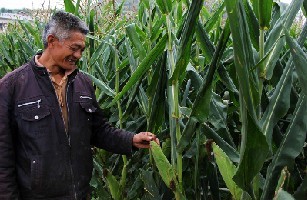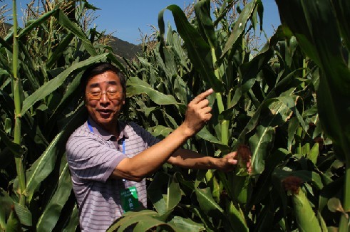 省农委总农艺师张太平深入我县高产玉米基地查看收成。