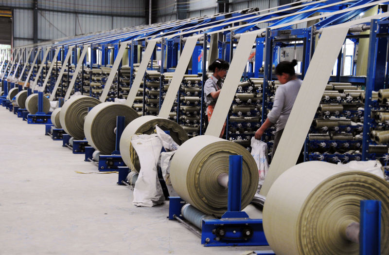 ▲科能塑编有限责任公司是我县招商引资的重点项目之一,自2010年11月建厂以来,公司通过“发展企业,员工双赢”的模式,每年可生产标准水泥编制袋近1亿条以上,年回收废旧塑料垃圾达1.1万吨。同时,可带动当地140余名农民实现家门口就业。图为该公司生产车间一角。