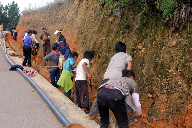 ▲日前,投资963万元的牛棚镇至玉龙乡引水工程正在施工中,工程完工后,将解决牛棚镇新华、水源、发洪等村2万余人及玉龙乡部分群众饮水困难。图为施工人员正在挖沟埋管。(冶付红 摄)
