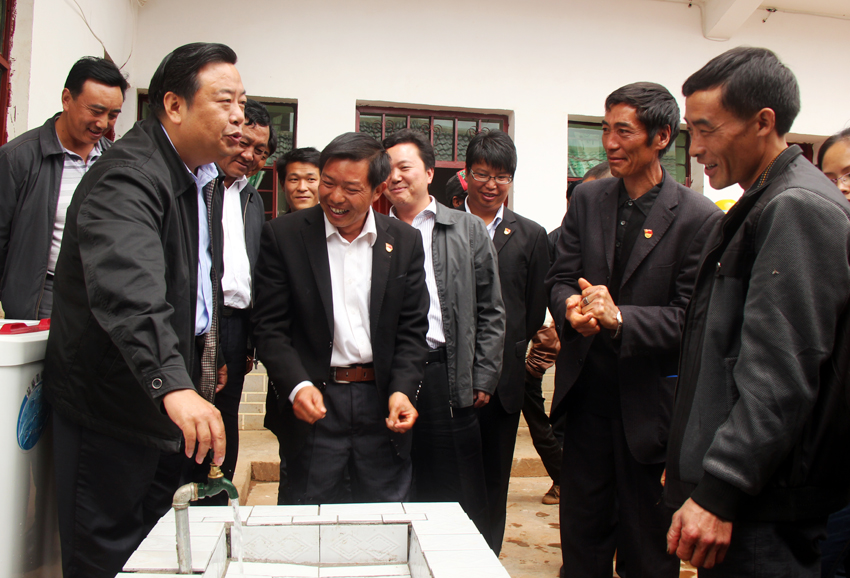 杨兴友书记与彭争银一问一答,叮嘱彭争银勤劳致富。随后,杨兴友书记走到彭争银家院坝内的水龙头旁,打开水龙头,看到一股清澈的自来水哗哗的流了出来,他告诉彭争银和围观的乡亲们,要大胆发展党参、魔芋、金银花等特色种植,依靠自来水,把“水”变成产业,再把产业变成钱。